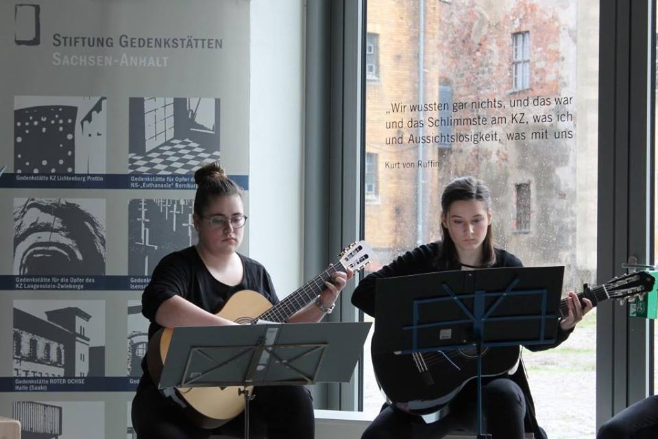 Angehörige ehemaliger Inhaftierter und von Opferverbänden, Geschichtsinteressierte, lokale Politiker und Schüler unseres Gymnasiums gedachten am Sonntag in der Lichtenburg Prettin der Opfer des Nationalsozialismus. Im Rahmen der Kooperationsvereinbarung des Gymnasiums Jessen mit der KZ-Gedenkstätte Lichtenburg in Prettin veranstalteten Schüler des Jahrgangs 12 zusammen mit ihrer Tutorin Frau Buchmann eine szenische Lesung, die allen Anwesenden unter die Haut ging.