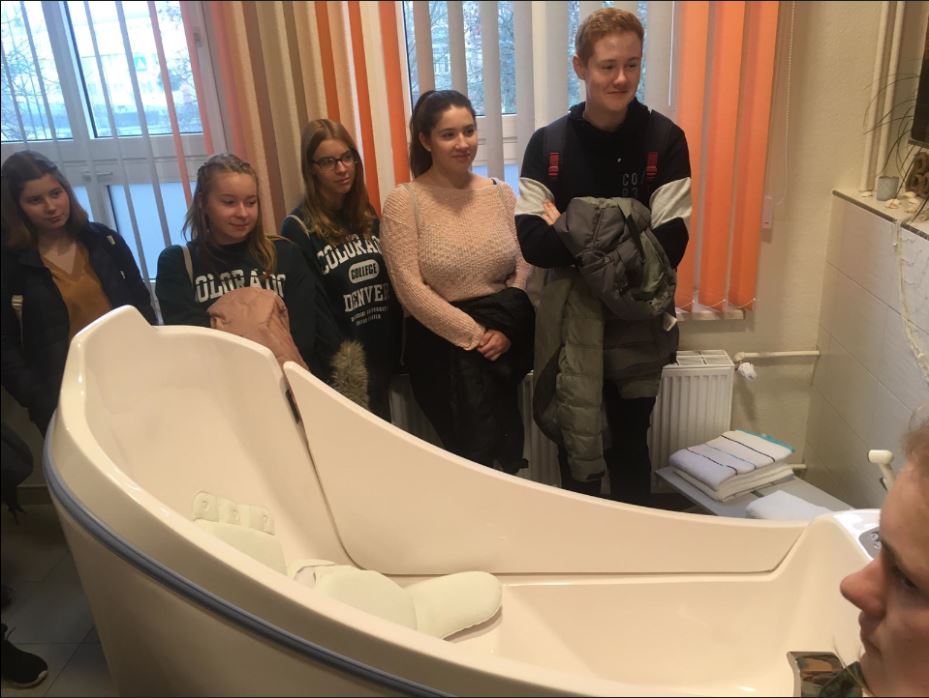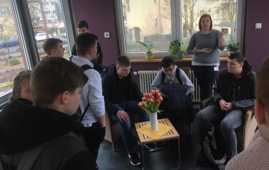 Nach der Zugfahrt kamen wir gegen 8.15 Uhr am Katharina von Bora-Hospiz in Wittenberg, in der Nähe des evangelischen Krankenhauses Paul Gerhardt an. Dort wurden wir schon von einer Gruppe des Personals und einem vollen und einladenden Buffet begrüßt, von dem wir zunächst einmal naschen und unsere Energiespeicher wieder auffüllen durften. Nach der Aufteilung in Gruppen erfolgte die Erkundung der verschiedenen Stationen, an denen wir das Thema „Hospiz“ aus unterschiedlichen Blickwinkeln umkreisten. An einer erfuhren wir zum Beispiel mehr über den geschichtlichen Hintergrund der Hospiz- und Palliativbewegung und des Hospizes in Wittenberg. An einer weiteren Station teilten uns dort sowohl beruflich als auch ehrenamtlich arbeitendes Personal ihre Erfahrungen mit den Gästen, wie sie sich im Hospiz fühlen und wie sie mit dem Tod umgehen. Zudem durften Schüler in einer positiven und wohlfühlenden Atmosphäre über ihre Erfahrungen mit Tod und Abschied berichten. Außerdem gab es noch eine Station, in der wir einen Einblick darin erlangen durften, wie es in die Räumlichkeiten des Hospizes aussieht, denn an diesem Ort wird versucht, den Gästen die letzten Monate so angenehm wie möglich zu machen. Das erkennt man an der fast familiären Einrichtung des Gebäudes, das weniger wie ein Krankenhaus, sondern mehr wie ein feines Hotel aussieht. Besonders eindrucksvoll waren für uns die Eindrücke, die wir im Wintergartenmachten. Dort begann die Übung zunächst harmlos. Wir bekamen den Auftrag, Dinge aufzuschreiben, die uns wichtig sind. Dann aber wurde uns eine Geschichte vorgelesen, in der wir plötzlich die Hauptrolle eines an Leukämie erkrankten Menschen spielten. Und mit voranschreiten der Krankheit verloren wir genau die Dinge, die uns wichtig sind. Das war so eindrucksvoll, dass einigen Schülern die Tränen kamen und wir erst da wirklich verstanden haben, was die Gäste des Hospizes durchmachen müssen. Der einzige Unterschied ist, für sie ist es keine Übung.