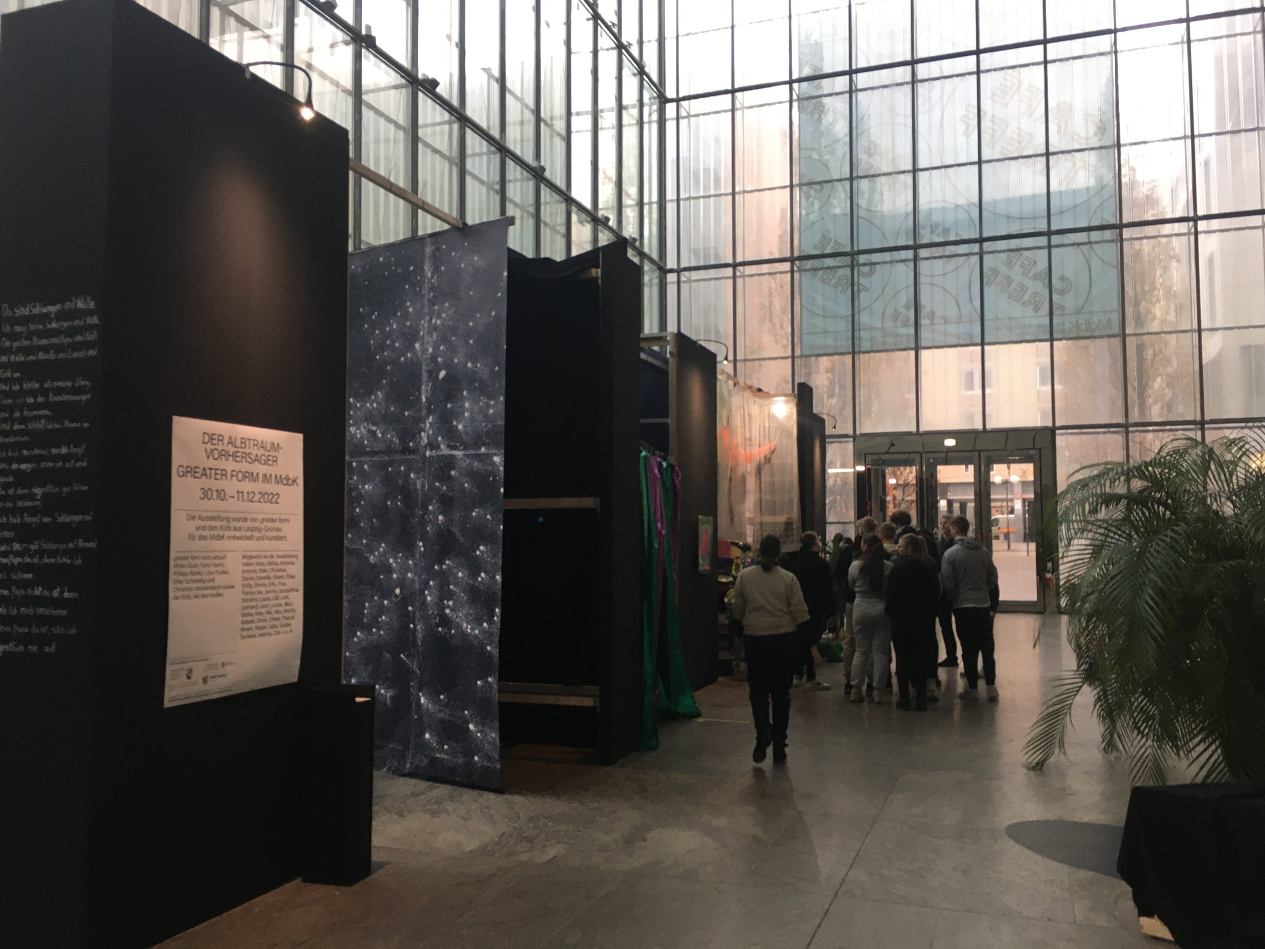 Am letzten Tag, Freitag, dem 09. Dezember, fuhren die Schüler*innen des Musikkurses mit einem Begleitlehrer nach Halle, um mit ihm und ihrem Musiklehrer u.a. das Beatlesmuseum zu erkunden und die Kunstkursschüler*innen begaben sich zum MDBK in Leipzig, einem Museumsneubau zwischen dem Hauptbahnhof und der Innenstadt, wohin auch die zwei Kunstlehrer des Gymnasiums Jessen gereist waren.