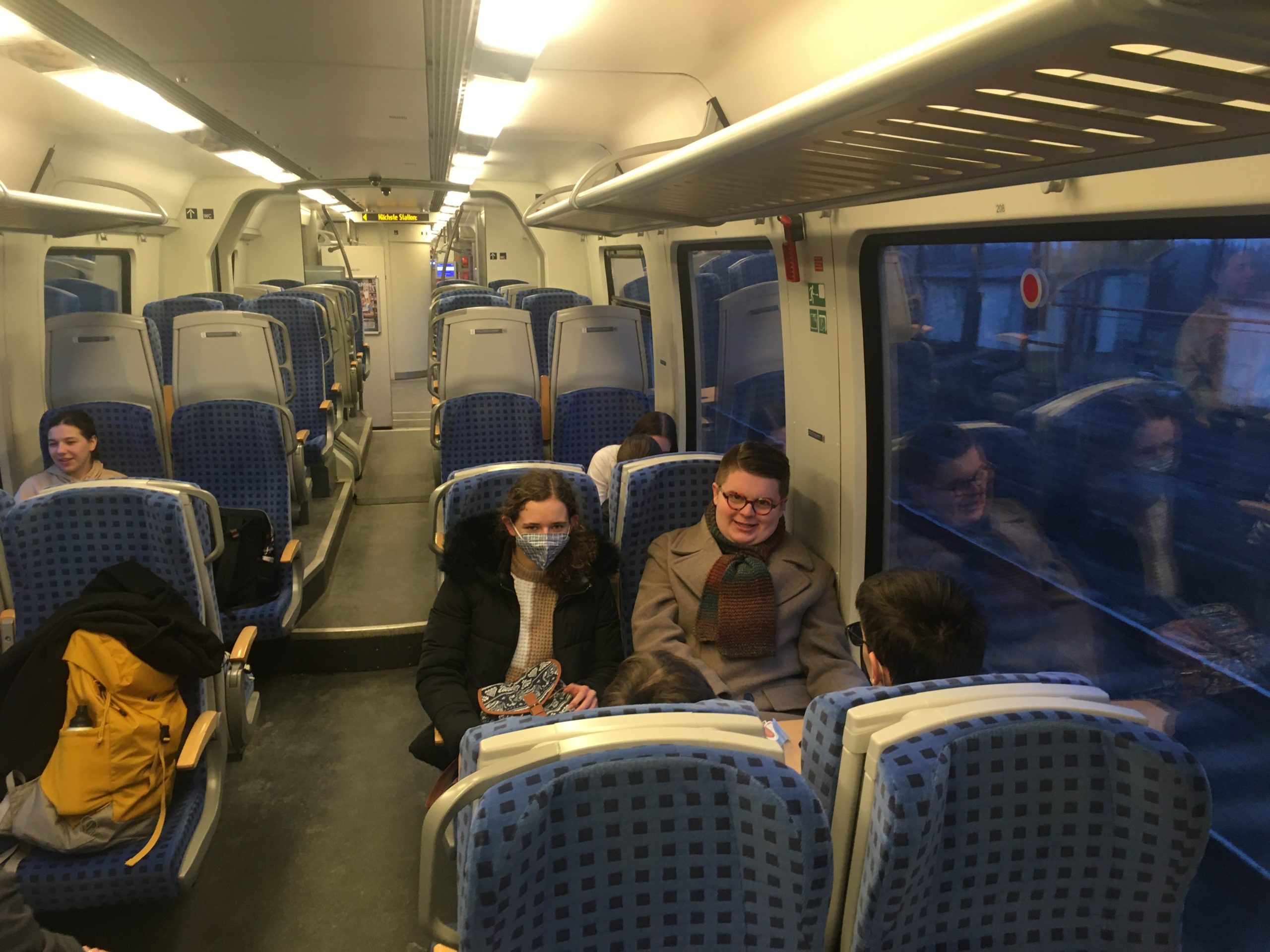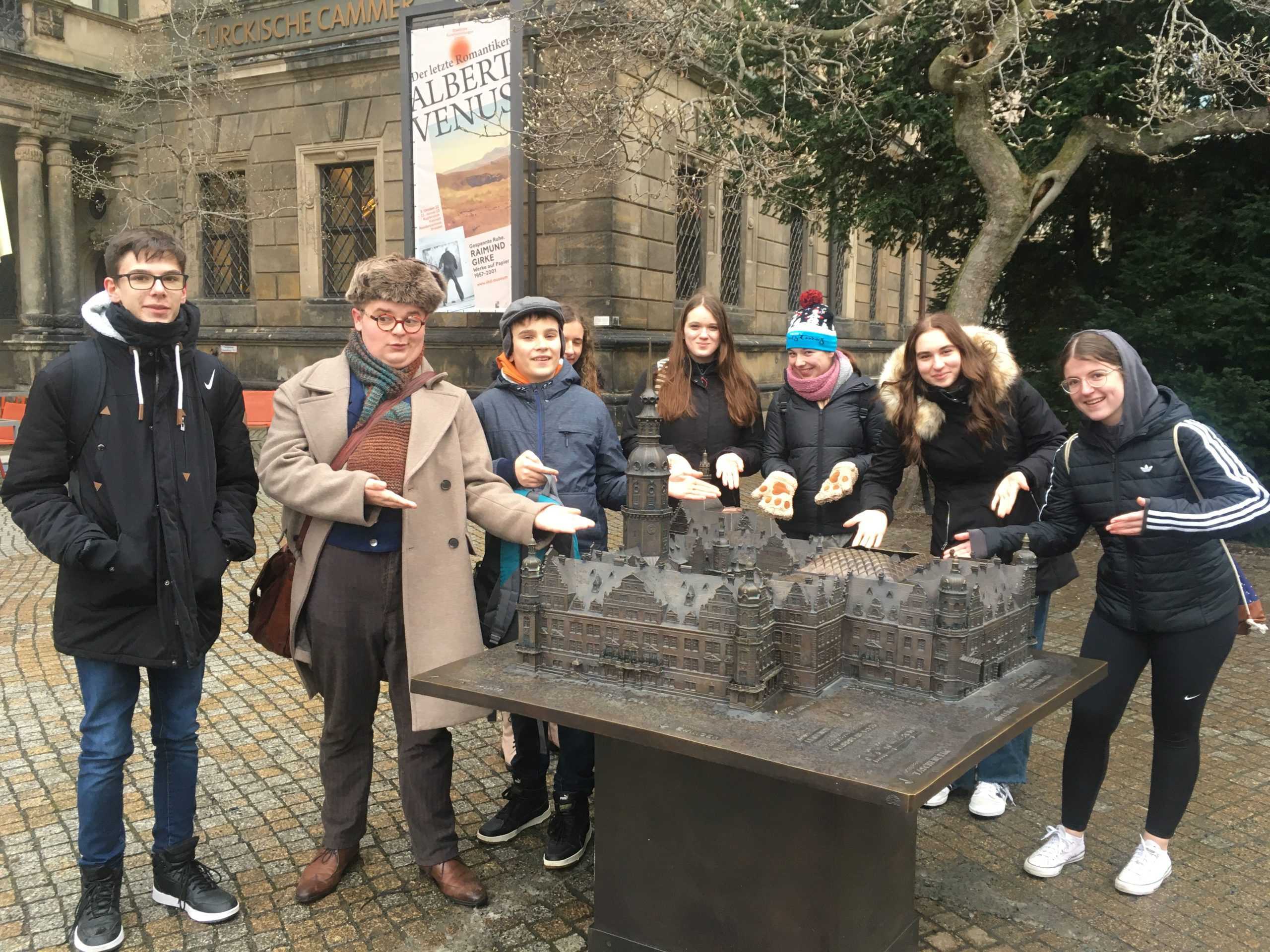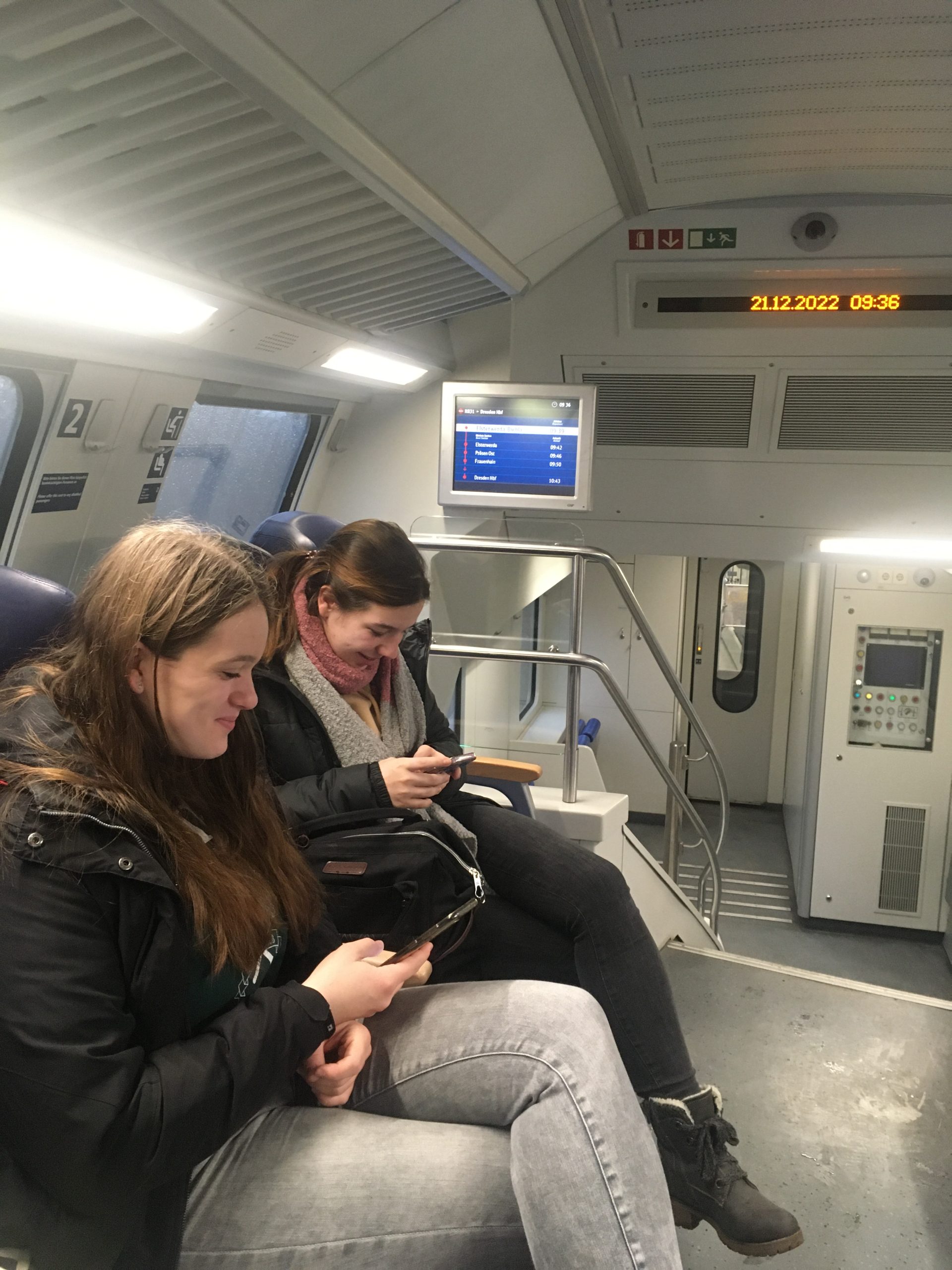Am ersten Ferientag der Weihnachtsferien, dem 21.12.2022 fanden sich wieder einige interessierte Schüler*innen, Herr Letz und Frau Pahlow schon um 8.04 Uhr wegen des Fahrplanwechsels am Jessener Bahnhof ein, um nach Dresden zu fahren. Wieder mussten wir zwei Mal umsteigen, alle Züge waren zum Glück pünktlich und in Falkenberg hatte sogar die Wartehalle geöffnet.
