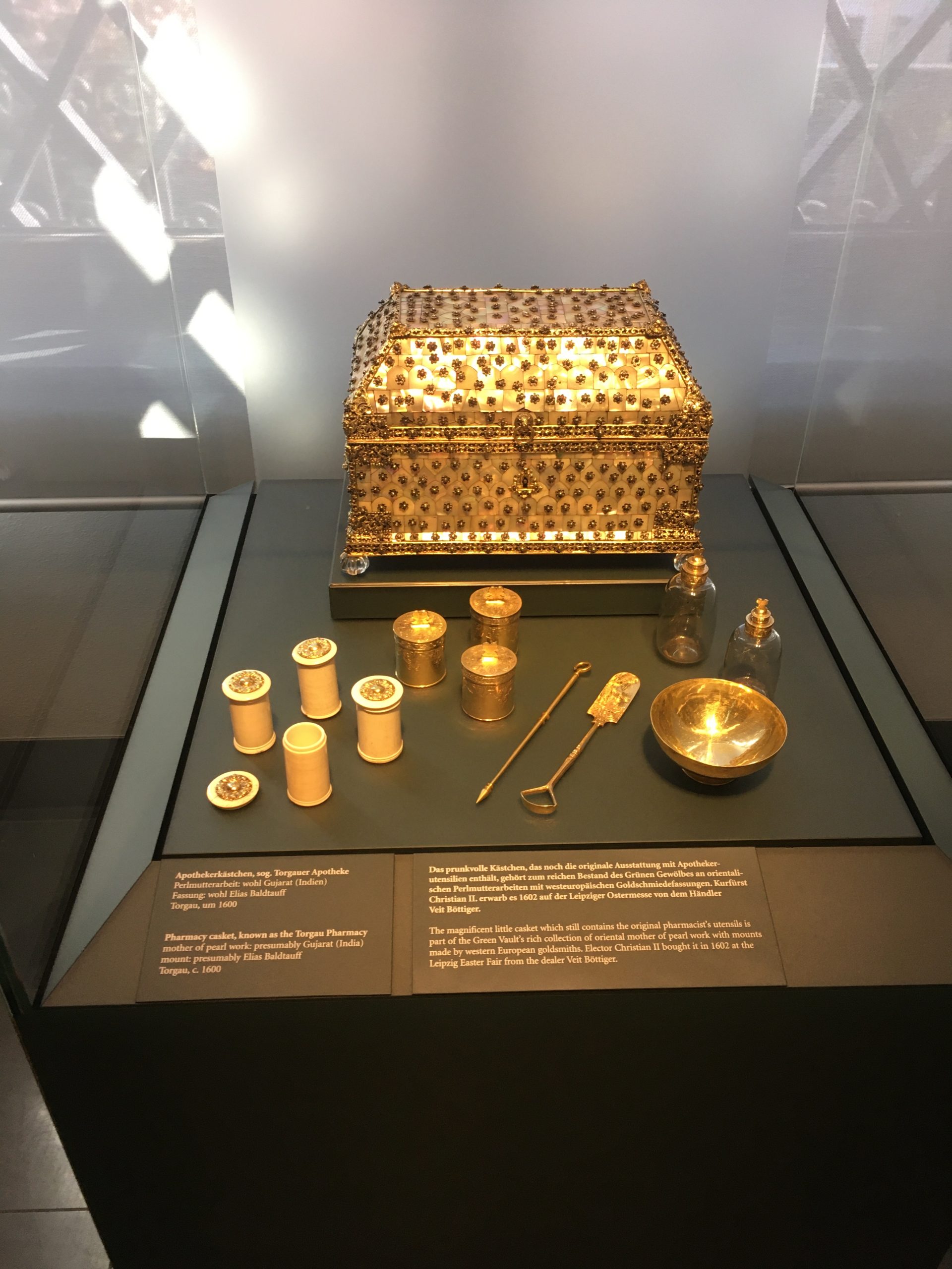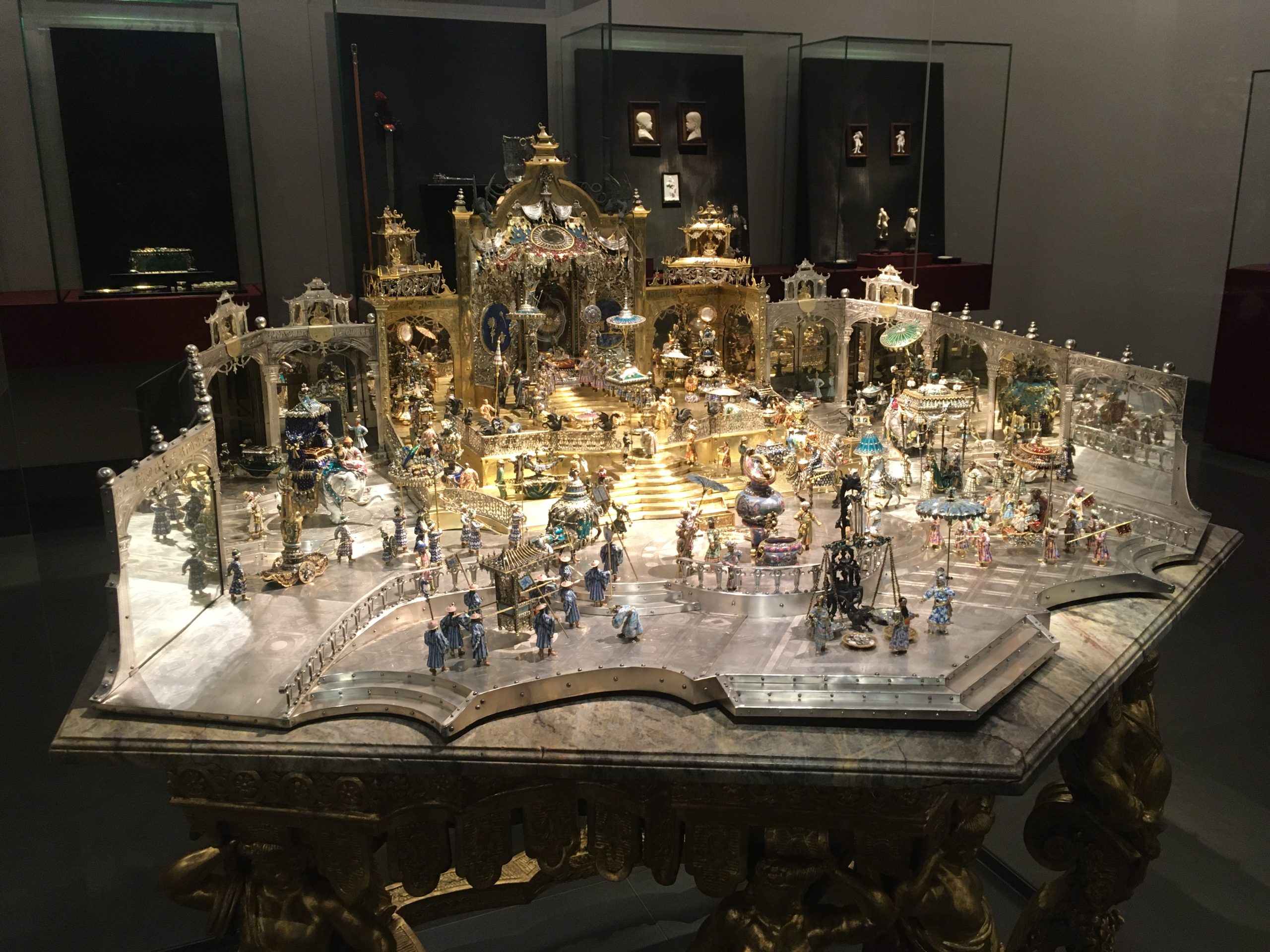und deren jeweilige Stimmungen eindrucksvoll und präzise ab. Das Neue Grüne Gewölbe und das historische Grüne Gewölbe zeigen meisterlich gearbeitete Schmuckgegenstände und Kostbarkeiten aller Art.