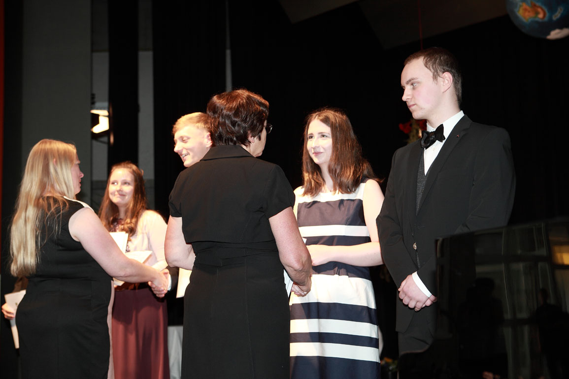 Für ihr hervorragendes Engagement bei der Gestaltung des Schullebens durften sich Yoshua Dost und Lea Gräbitz in das Ehrenbuch der Schule eintragen. Zusätzlich wurde Lea Gräbitz mit dem Schulpreis des Fördervereins ausgezeichnet. Als Jahrgangsbeste wurde Viktoria Trabitz geehrt.