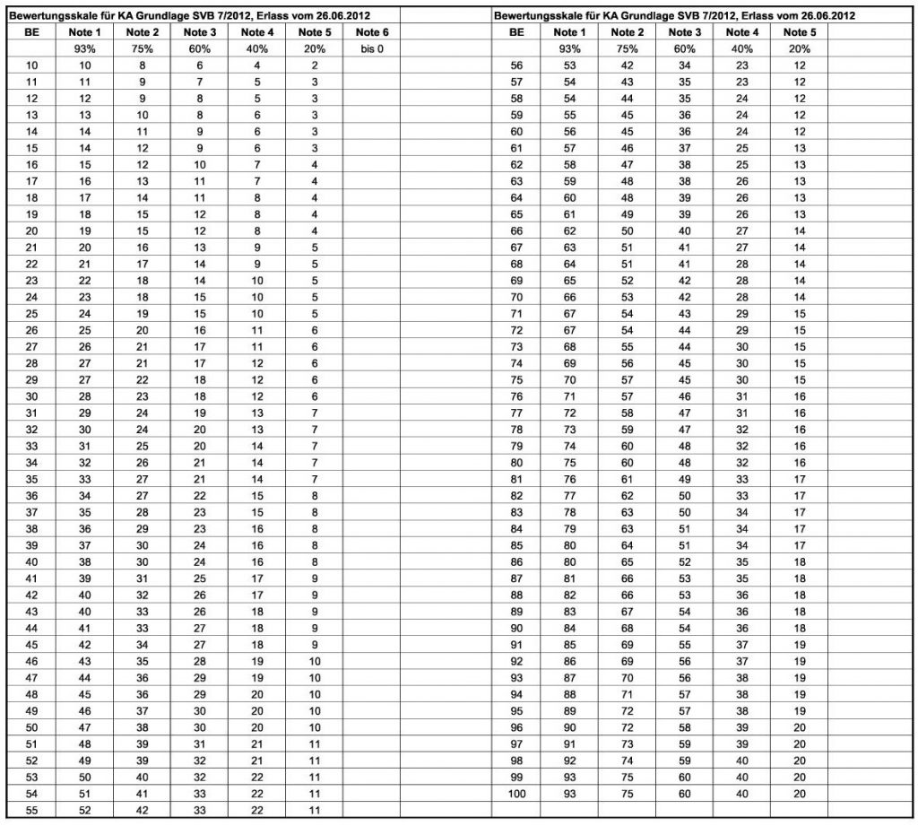 Bewertungshinweise Klassenarbeiten Klausuren